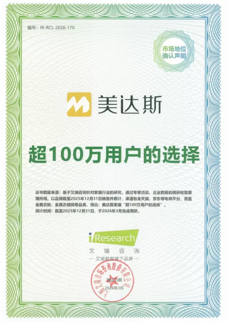 在消费升级与健康环保理念并行的今天,金属衣柜凭借其环保、耐用、灵活定制的特性,正逐步替代传统衣柜,成为家居市场的全新风向标。在金属衣柜行业深耕多年的美达斯,凭借扎实的工艺、创新的设计及卓越的服务,迎来了又一个重要的里程碑——近日,美达斯金属衣柜获得权威机构认证,成为“超100万用户的选择”,再度彰显其在行业内的领航者地位。