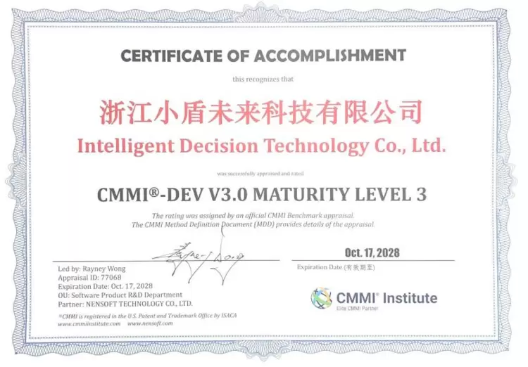 里程碑时刻!小盾未来通过CMMI3级认证,获国际权威认可