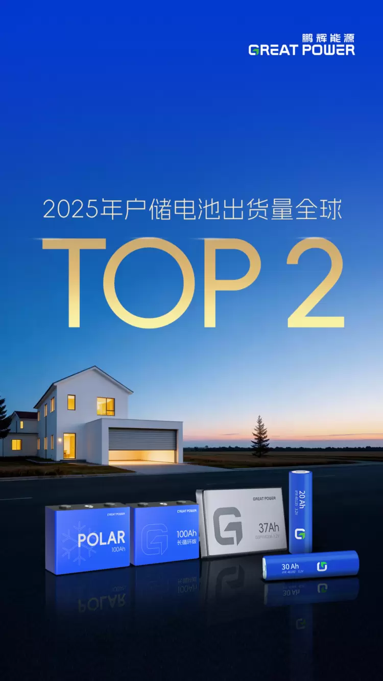 双捷同至!根据国内ICC鑫椤资讯发布的2025年全球户储出货量榜单,鹏辉能源凭借在户用储能领域的差异化创新能力,持续巩固全球户用储能市场优势,位居全球TOP2。