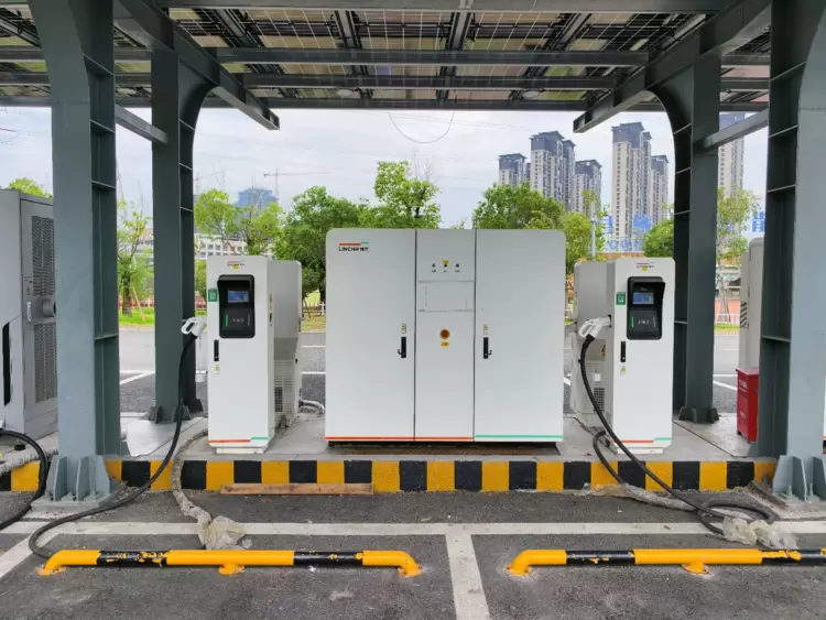在云霄县南湖湿地生态园停车场内,云霄首座集“光伏发电、储能、充电、电池检测、车网互动”于一体的示范站点。领充为站内安装了2台720kW分体式直流充电功率柜,配置10个双枪终端,2个单枪终端以及2个600A液冷终端,能同时为24辆新能源汽车充电。并且建设了2台120kW V2G,参与车网互动,减少电网压力。