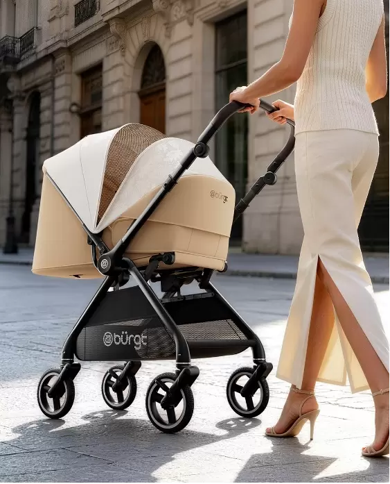 追求性价比,希望一车用到大,这些需求在购买婴儿车的时候确实让人头疼,但随着行业技术的不断突破,当前一车多用的设计已经越来越风靡。2026年初,苏州布格特推出了“双座舱”模式避震婴儿推车,睡篮+座兜一体结构,直接一体操作随心切换,无需单独购买睡篮或其他配件,而这样的设计,车架重量仅8.2kg,并搭配推把换向设计,一键收车,满足新生睡眠、婴儿躺卧、幼儿坐立三大阶段的使用需求,综合性价比也是其受到关注的主要原因之一。