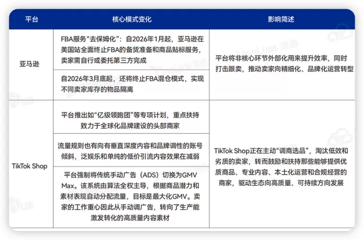 平台与独立站同步变革:亚马逊FBA去保姆化、TikTok Shop向品牌化倾斜,倒逼精细化运营;独立站从可选项变为必选项,在国家标准与合规要求下,商家重心从快速建站转向深度运营与持续增长。