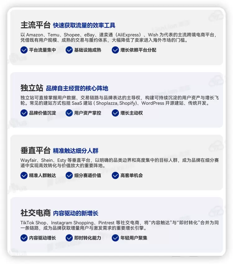 2026年品牌出海告别单打独斗,进入全渠道协同深水区,不同渠道承担差异化功能,形成互补增长体系: