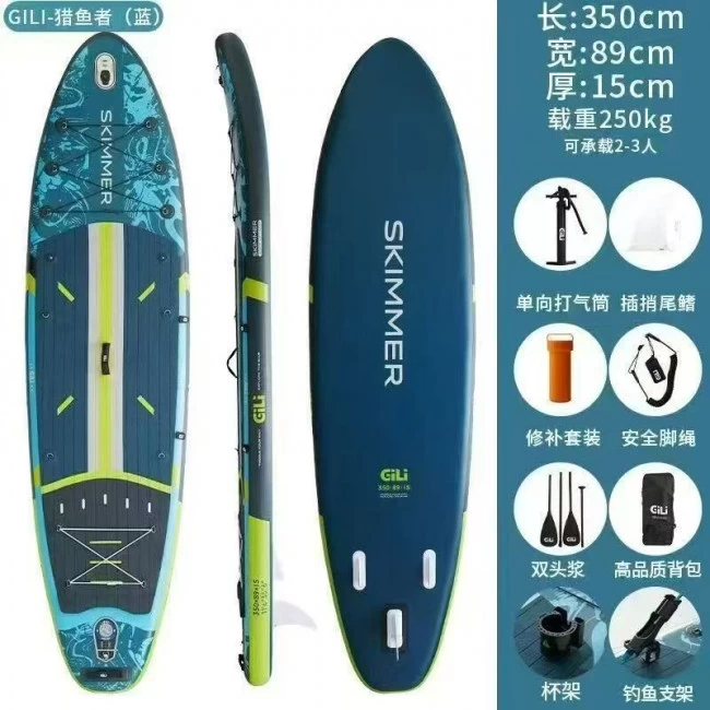 GILI猎鱼者专为路亚爱好者量身打造,核心设计围绕稳定性与实用性展开。板体全长350厘米,宽度达89厘米,宽大板面带来出色的水上稳定性,无论是站立抛投、移动作钓,还是长时间驻留,都能保持平稳不晃,新手也能轻松上手。产品采用加厚拉丝PVC材质,结构坚固耐用,抗刮耐磨,面对复杂水域环境也能从容应对,安全感拉满,为户外垂钓保驾护航。