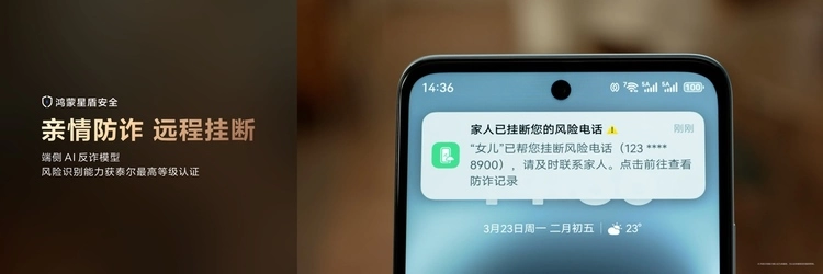 同样的,护眼屏的长时用机体验离不开稳定的底层支撑。华为畅享 90系列在麒麟 8 系芯片与鸿蒙方舟引擎的深度协同下,不仅实现了相比上一代整机性能最高提升67%,让用户无论是打开应用、切换后台,还是滑动屏幕,操作都更加流畅;还将这种高效能延伸到了安全与通信领域。鸿蒙操作系统6内置的AI防诈能力,能能检测AI换脸等新型风险,还能配合远程挂断的AI亲情防诈功能,还获得了移动智能终端操作系统“AI风险识别能力”分级认证卓越级证书(最高等级)。