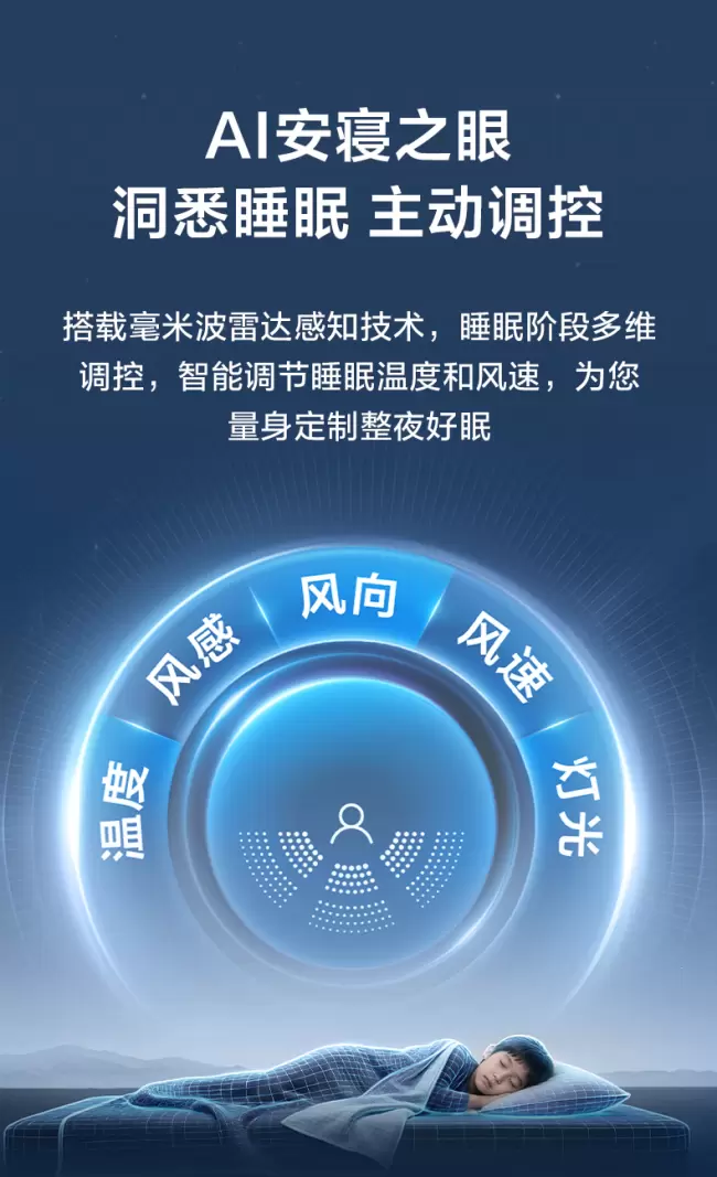 数据显示,中国超48.5%的成年人存在睡眠困扰,温度不适、噪音干扰、吹风直吹等空调使用痛点成为影响睡眠质量的重要因素。