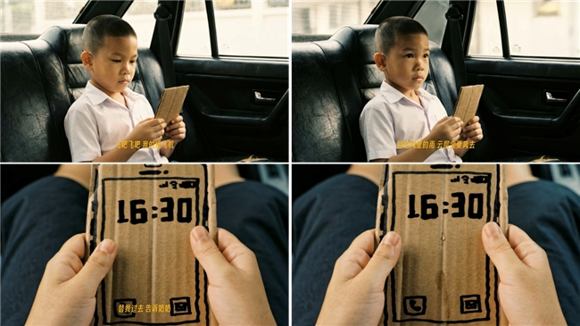 结尾长达一分多钟的车内长镜头,被许多人称赞为“神来之笔”——开往福利院的车上,小男孩静静地捧着“纸手机”,等待永不会响起的电话,伴着AI音乐在纸板手机上落下一滴眼泪。杨选道出了创作逻辑:“亲人的离开往往伴随着长时间的沉默,到一个时间节点才会流泪,这段长时间的沉默,正是中国人的情感内敛的体现。”