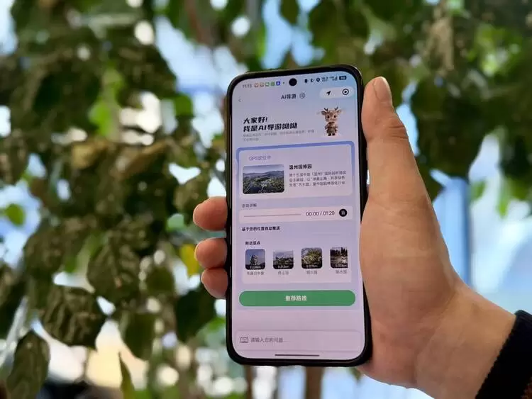 “大家好!我是AI导游呦呦,精通园博百科,实时讲解,陪您畅游山海园林,秒懂文化黑科技!”打开“温州园博园”小程序,AI管家和AI导游时刻在线,为游客提供咨询和向导服务。