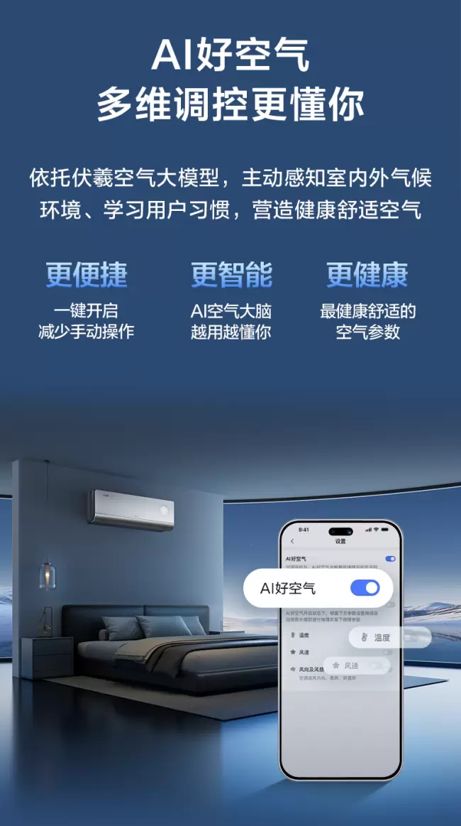 在AI技术飞速发展的今天,空调的功能早已超越了简单的冷暖调节。TCL小蓝翼P6Ultra依托“伏羲空气大模型”,具备了一键“AI好空气”功能。它能主动感知室内外气候环境,并结合用户的使用习惯,自动匹配最佳的空气参数。
