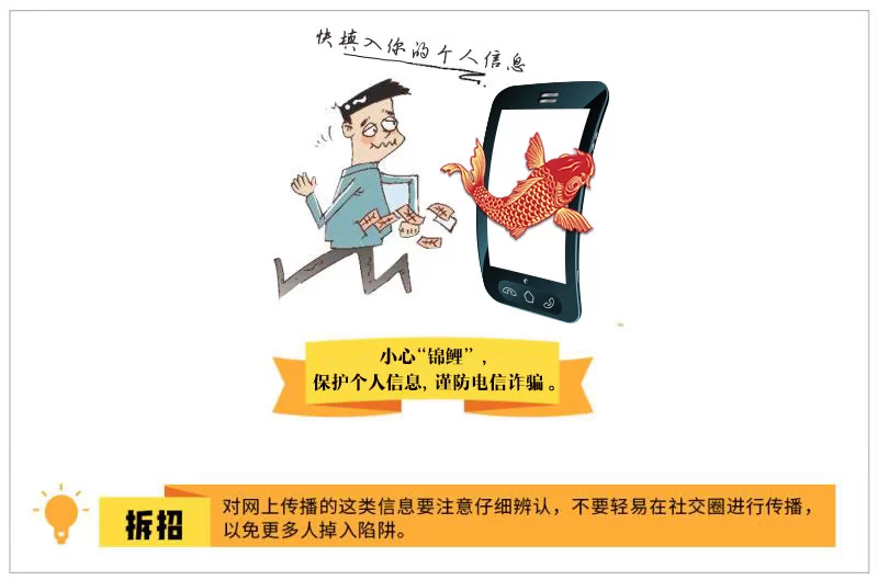 “要保护个人信息,首先个人要对自己的信息充分重视,不随便填写个人信息,尤其是要求填写涉及银行卡等的信息。”湖北移动信息安全技术人员提醒用户,要提高个人信息保护的安全意识,切勿点击短信里不明链接,更不要填写社交账号密码、手机验证码、银行卡密码等涉及财产安全的重要信息,这样才能远离被“假锦鲤”套路。