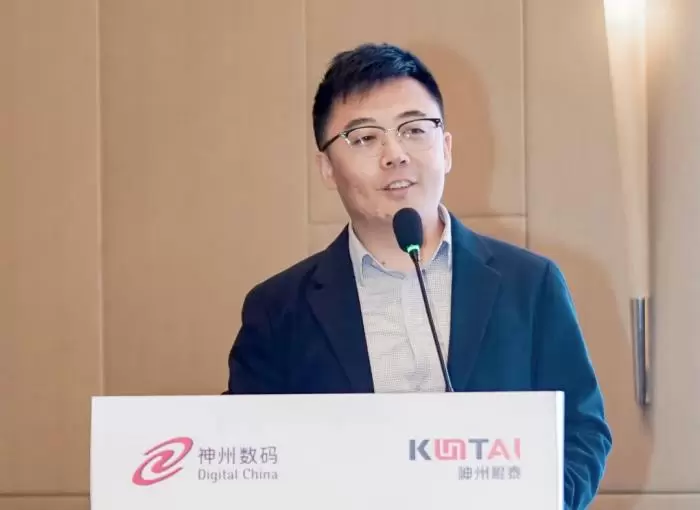 神州鲲泰品牌市场及生态发展部渠道经理 吴凯向在场合作伙伴详细介绍了“神州鲲泰2026渠道体系”,推出三大渠道升级举措,全方位助力伙伴发展。