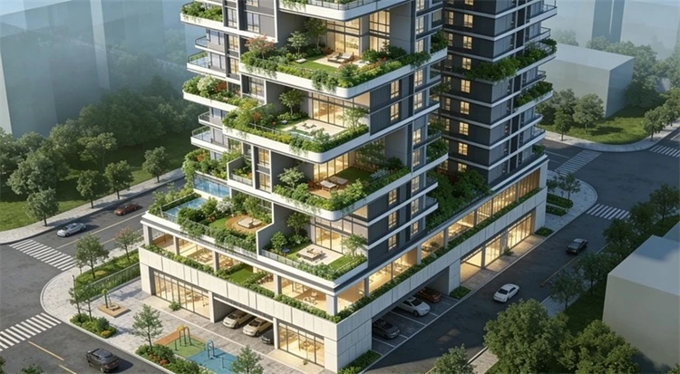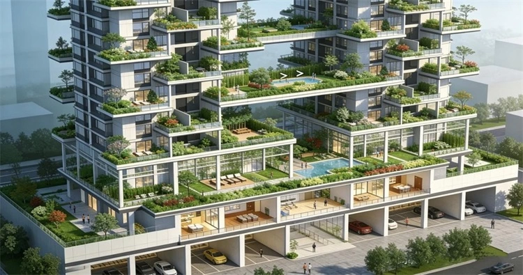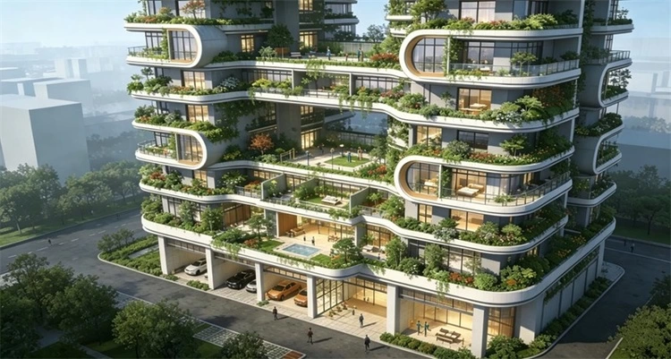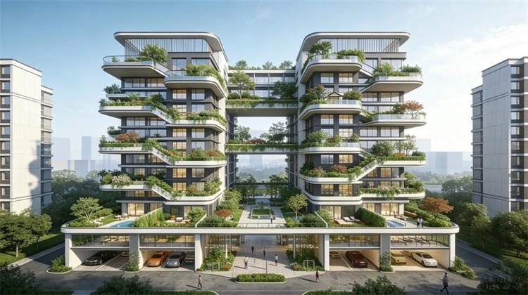 以高性能围护结构、可再生能源、再生建材为核心,达到绿色建筑高星级与近零能耗要求;采用装配式结构与一体化装修,减少现场湿作业与碳排放;AI能耗模型在设计阶段模拟运行数据,动态优化围护、遮阳、设备选型,交付后持续自适应调优,较传统住宅节能30%以上。