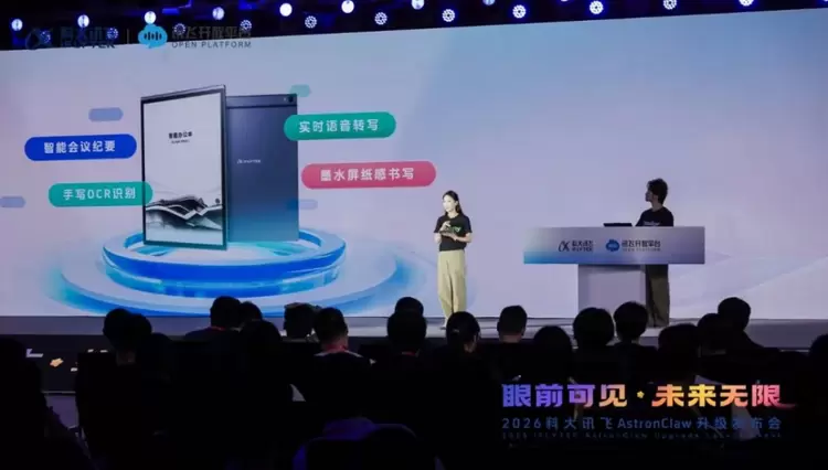 2026年4月15日,科大讯飞AstronClaw升级发布会正式举办。本次发布会以“眼前可见,未来无限”为主题,集中发布9项创新产品,首次完整展示“软硬一体”AIAgent架构体系,标志着AI智能体正式突破屏幕限制,从虚拟的聊天助手升级为可走进真实物理世界的执行中枢,推动AI从“回答问题”向“完成任务”实现跨越式发展。