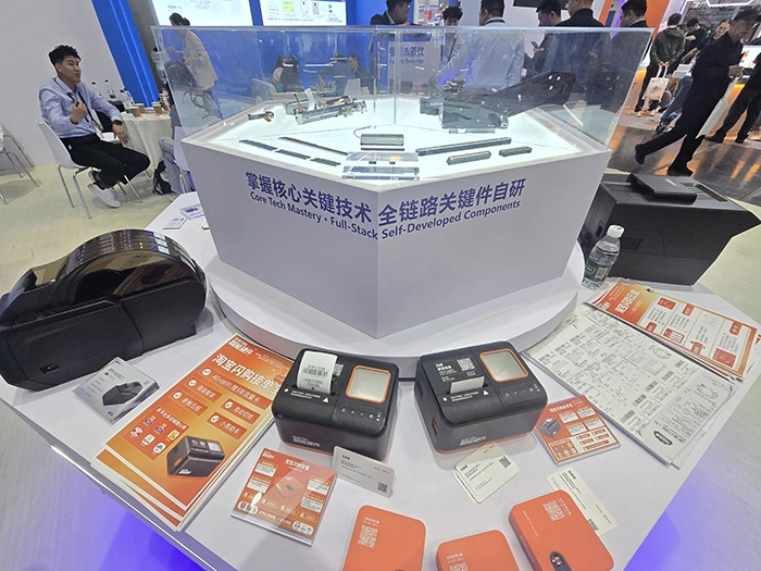 作为专用打印扫描领域的深耕者,新北洋以“智印零售全生态”为主题重磅亮相本届展会。现场特设核心展示区,集中展出了从自研关键件、打印机芯、嵌入式打印单元到整机的全产业链设备,凭借完整的一体化优势,充分彰显了公司三十年深耕的深厚技术底蕴与强悍制造实力,成为全场瞩目焦点。