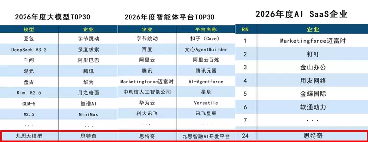 - 荣登三榜!思特奇成功入选2026人工智能分类排行榜多项榜单