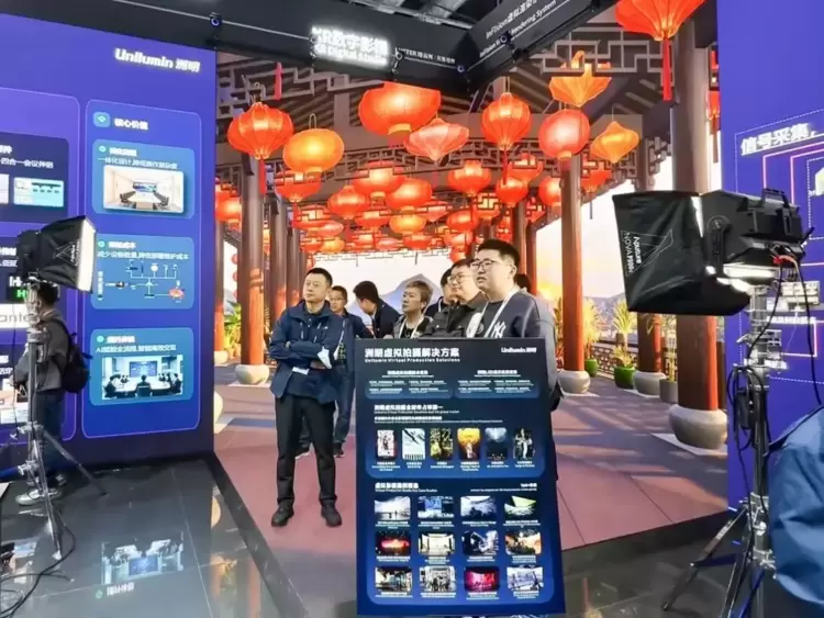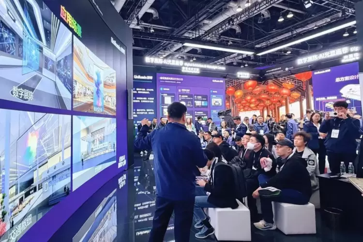 展位现场设置了L型的“AI光显画卷”,既作为数字展陈解决方案的整体视效呈现,同时划分了五大专区展示LED+AI如何赋能千行百业: