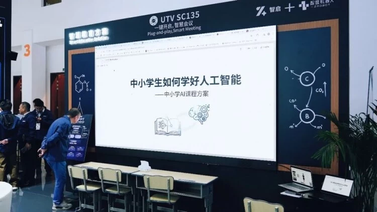 “智启·智显”智慧教育解决方案的展示也吸引了相当多的教育用户参观交流。智启是洲明合作伙伴、AI行业龙头智谱与北京海淀区的教育合资公司。