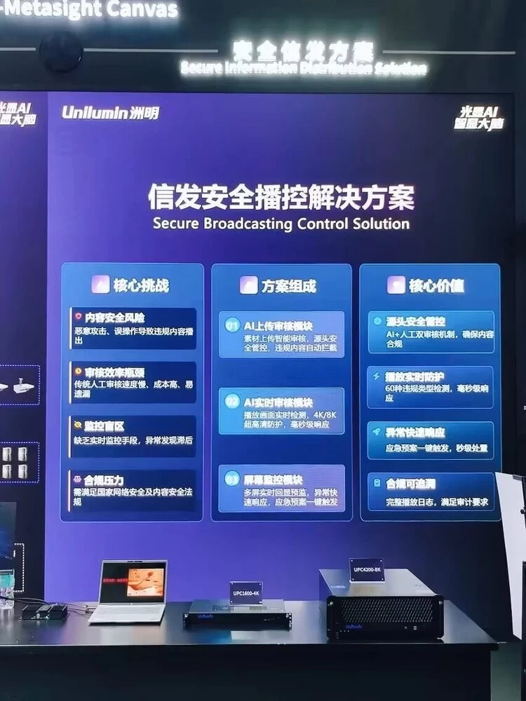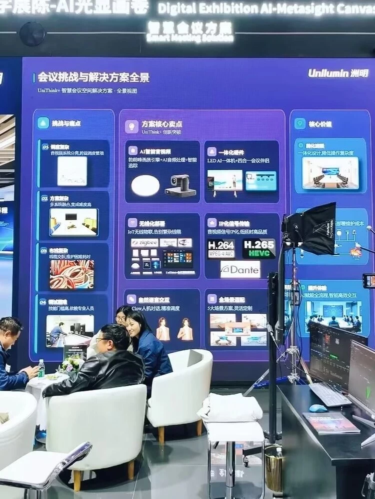 洲明团队在主屏区域全球首发“AI音视频智能体平台”及多款新品