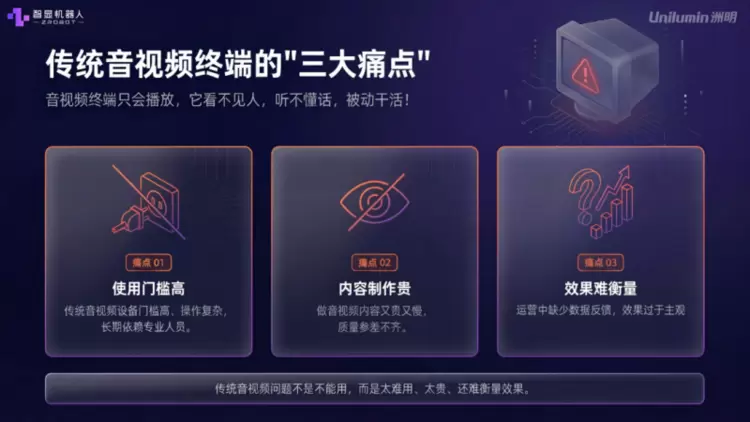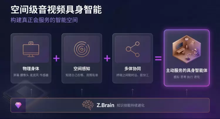 本次展会,洲明全球首发【音视频智能体平台】。传统的音视频终端,屏幕可以播放内容,但它不会感知、不会思考、不会服务,没有场景意识,我们给传统终端植入“智脑(Zbrain)”,赋予屏幕空间感知能力,让屏幕知道自己在哪、周围有谁,它不再是一个冷冰冰的显示屏,而是一个“活”的、能主动提供服务的智显机器人