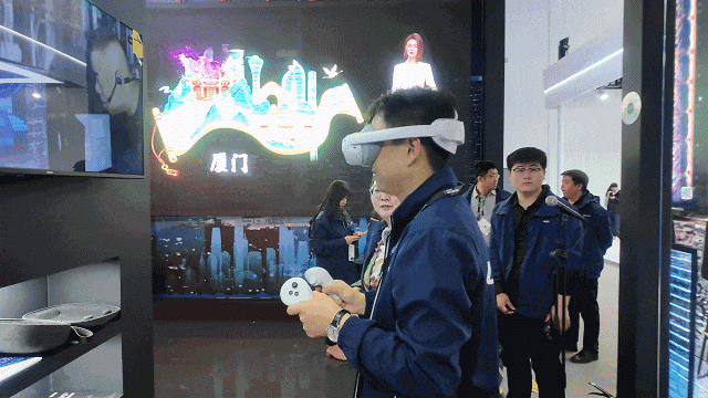 逛累了,不妨来“沉浸式体验空间”,这里由洲明和凌云光联合打造。欢迎您戴上VR头盔和眼镜,感受一下三维视频带来的临场感。而临出口处,洲明设置了两块重磅产品: