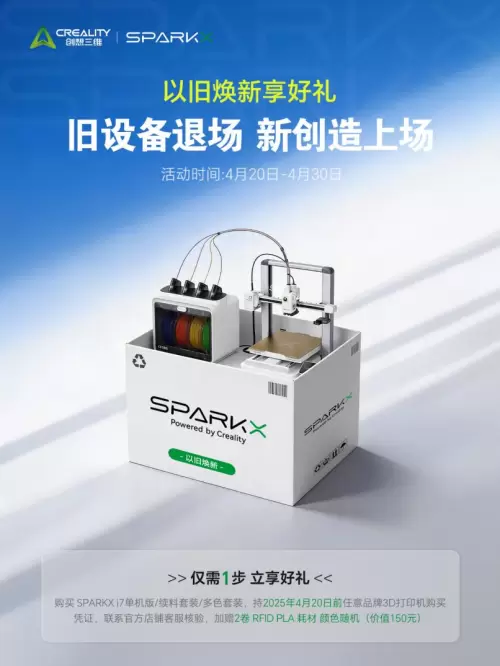 近期,创想三维推出“以旧焕新”活动。这项活动的规则十分开放:凡是在活动期间购买SPARKX i7的用户,只要在2025年4月20日前拥有过3D打印机(不论品牌、不论型号),均可获赠价值150元的官方耗材。