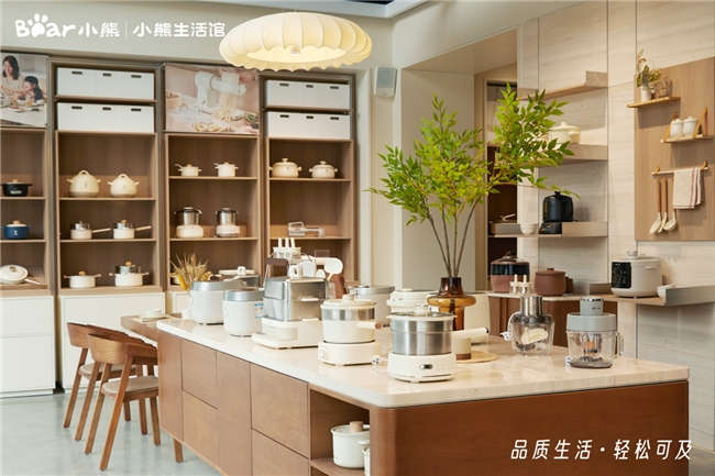 小熊生活馆是小熊电器全国首家品牌体验店。走进馆内会发现,这里打破了传统单一产品陈列式展示,取而代之的,是以品质生活为轴线的沉浸式场景空间。从清晨用早安破壁机制作营养餐饮,到傍晚小食光电蒸锅烹饪全家晚餐,从办公桌上全玻璃养生壶慢炖的养生时刻,再到喂养台前消毒泡奶一体机带来的育儿便捷等——生活馆将元气早餐、丰盛晚餐、好友聚餐、办公养生等全场景串联,让用户能沉浸感受轻松愉悦的品质生活。