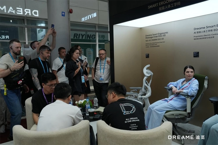首次公开亮相的追觅智慧家居,在本届广交会上重点展示了由EGC-XR9 AI智能人体工学椅与EGT-QXZ-1478倾斜升降桌组成的智慧办公核心场景。该组合凭借技术差异化与沉浸式体验,成为展区人气最高的区域之一,获得专业观众与采购商的高度认可。