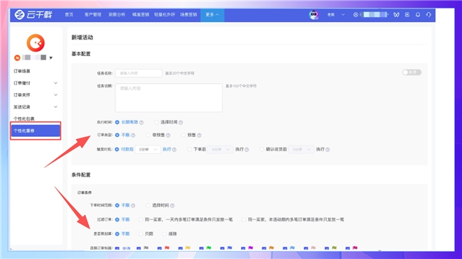 用户确认收货后自动塞券,延长用户生命周期,把一次性买家转化为忠实客户,高效提升复购率;用户完成付款后即时塞券,抓住消费热情峰值,用限时有门槛券激励凑单,有效提升连带购买与客单价,轻松实现挽单提效。