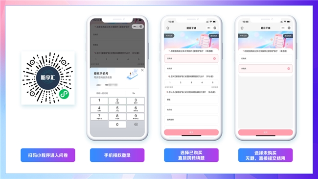 智能跳题逻辑,商家可以根据用户回复跳转到对应题目,适合母婴、美妆、服饰等类目用户调研、偏好收集、需求洞察。比如母婴类目性别选择男,接下来跳转的都是关于男宝宝的问题,更精准的收集客户信息。大幅提升回收率与数据价值。