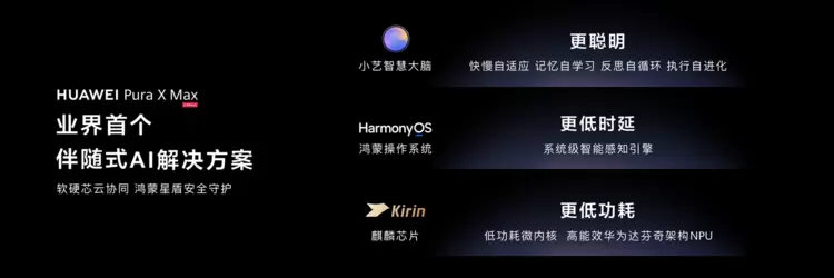 4月20日,华为发布全球首款大阔折手机—HUAWEI Pura X Max,并在业界首发伴随式AI解决方案。与市面上“你问它答”的AI App不同,小艺伴随式AI可以主动提供服务,如同配备了一名智能助理。其依托小艺智慧大脑能力深度融合鸿蒙操作系统和强大麒麟9030 Pro芯片,软硬芯云协同实现更低功耗、更低时延、更聪明的使用体验,配合鸿蒙星盾安全架构,筑牢安全防线。同时,小艺伴随式AI联合生态伙伴,推动AI交互实现从“被动响应”到“主动服务”的跨越式升级。