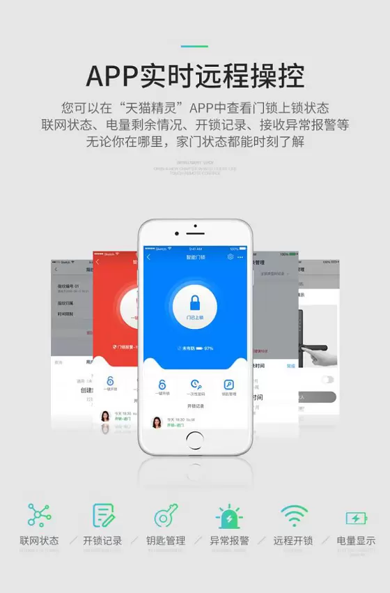 这款新品在APP端的功能也有很大程度的提升,实现了更多的功能体验。比如,用户可以利用天猫精灵APP轻松管理指纹、密码、卡片等,还可以随时随地创建临时密码,发送给访客。据悉,TK2同时还搭配了可视猫眼,能实现远程可视对讲,在确认访客身份后还可以进行一键开锁。更让人惊喜的是,用户可以在APP上创建劫持指纹和密码,当门锁验证到胁迫指纹或密码时,即可触发联动报警,以保证用户的人身安全,真正实现全方位的守护。