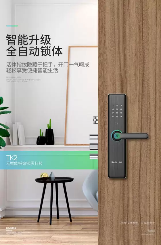 更值得一提的是,在智能交互和外观上下足了功夫的TK2,在硬件配置上也毫不马虎,依旧是高标准,高质量。例如,采用国标三防锁体和行业最高安全级别的超B级锁芯,安全性更高更强;指纹头设计采用瑞典进口FPC半导体指纹传感器,高度识别人体指纹且有效防复制;把手的设计采用游离式同心轴把手,上锁后能有效保护锁体不受多余损坏;还有防猫眼设计,能有效防止儿童、宠物误开门等等。