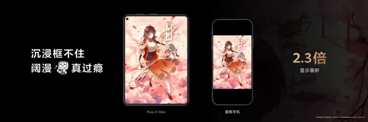 •阔感漫画,将爽感拉满:作为“为内容而生”的大阔折,Pura X Max的内屏采用了独特的比例,显示面积较是传统直板机的2.3倍。这一硬件特性与哔哩哔哩漫画的阅读体验完美契合。在接近16开纸质书籍比例的大屏上,超过1000部国漫的跨页大图得以完整展开。无论是宏大的战斗场面还是细腻的情感特写,用户都能获得“满屏皆是细节”的极致视觉冲击,真正实现了“阔感”漫读。