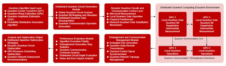分布式量子计算的核心思想,是通过将多个量子处理单元连接到同一个量子通信网络中,使这些处理单元能够协同执行量子算法任务。每个量子处理单元可以在本地执行量子门操作,并通过量子通信链路共享量子信息,从而在整体上形成一个规模更大的虚拟量子计算系统。与传统单机量子计算模式相比,这种架构能够有效突破单个量子处理器的物理限制,并为复杂量子算法提供更高的扩展能力。然而,分布式量子计算在实际应用中仍然面临诸多挑战,例如跨处理器量子门操作所带来的噪声问题、量子纠缠分发成本较高以及通信延迟等因素,都可能对算法性能产生重要影响。因此,在真实硬件部署之前,通过高精度模拟器对分布式量子算法进行系统性研究,就显得尤为重要。
