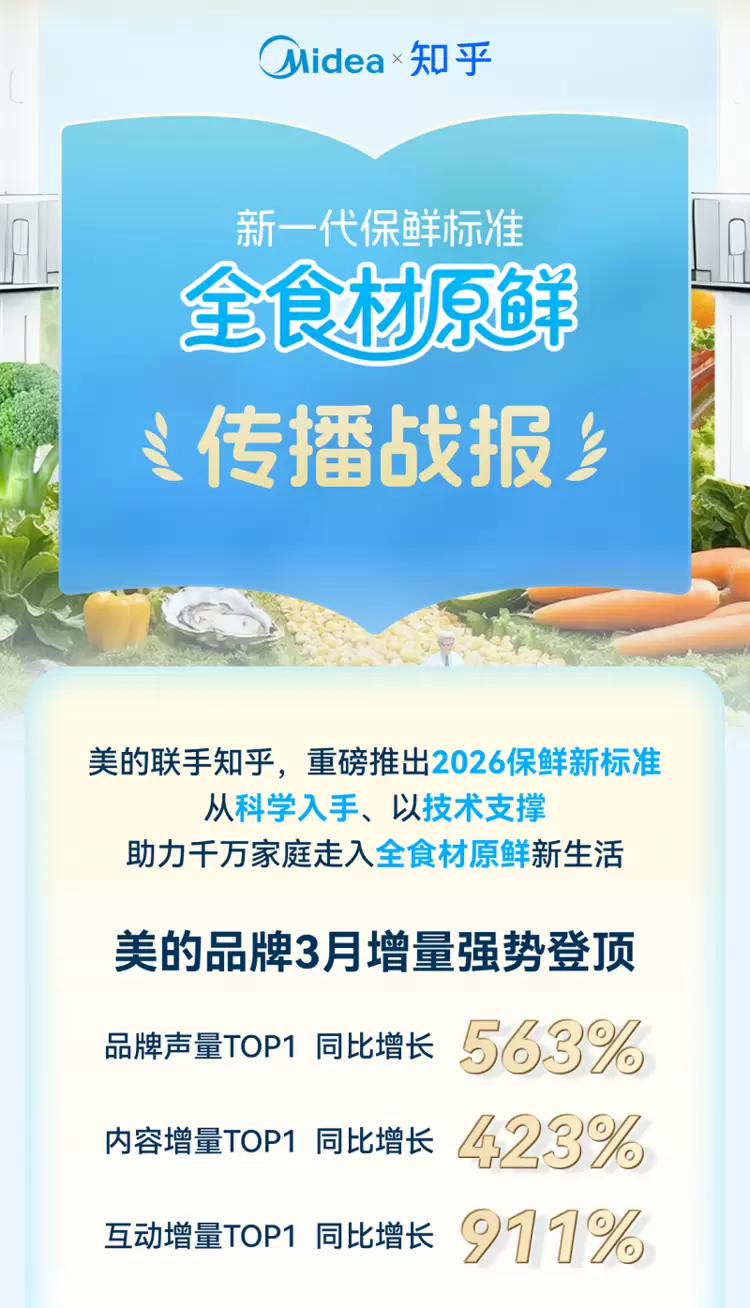 美的联合知乎发布了《2026中国家庭全食材原鲜标准白皮书》,把“原鲜”拆成感官新鲜度、营养留存率、口感还原度、安全洁净度四个维度。