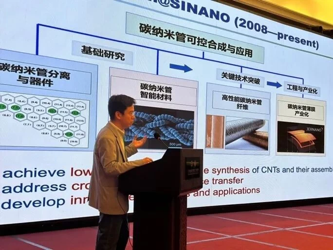 李清文导师团队、中科院苏州纳米所研究员邸江涛围绕《碳纳米管规模化制备与应用》开展主题分享,聚焦碳纳米材料前沿技术进展,详解碳纳米管规模化、低成本、高品质制备的技术难点及自主攻关成果,剖析其在力学增强、导电导热、结构防护等方面的性能优势,展望其在新能源装备、高性能防护材料、高端电子器件等领域的产业化前景。相关技术成果与中珀新材核心高分子碳纳米复合材料形成关键互补,为碳基纳米材料与高性能防护材料跨界融合、规模化产业落地提供重要技术支撑。