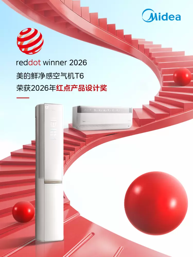 红点奖由德国设计协会于1955年创立,与德国“iF奖”、美国“IDEA奖”并称为世界三大设计奖。该奖项以“促进环境和人类和谐的设计”为理念,素有“设计界奥斯卡”的美誉。此次美的鲜净感空气机T6获奖,不仅意味着该产品在外观美学、人机交互与工业质感上获得了国际权威的“品质认证”,更标志着以美的为代表的中国空调品牌,正在以顶层设计的系统思维,深刻回应着全球用户从“功能满足”到“情感共鸣”的消费意识跃迁。