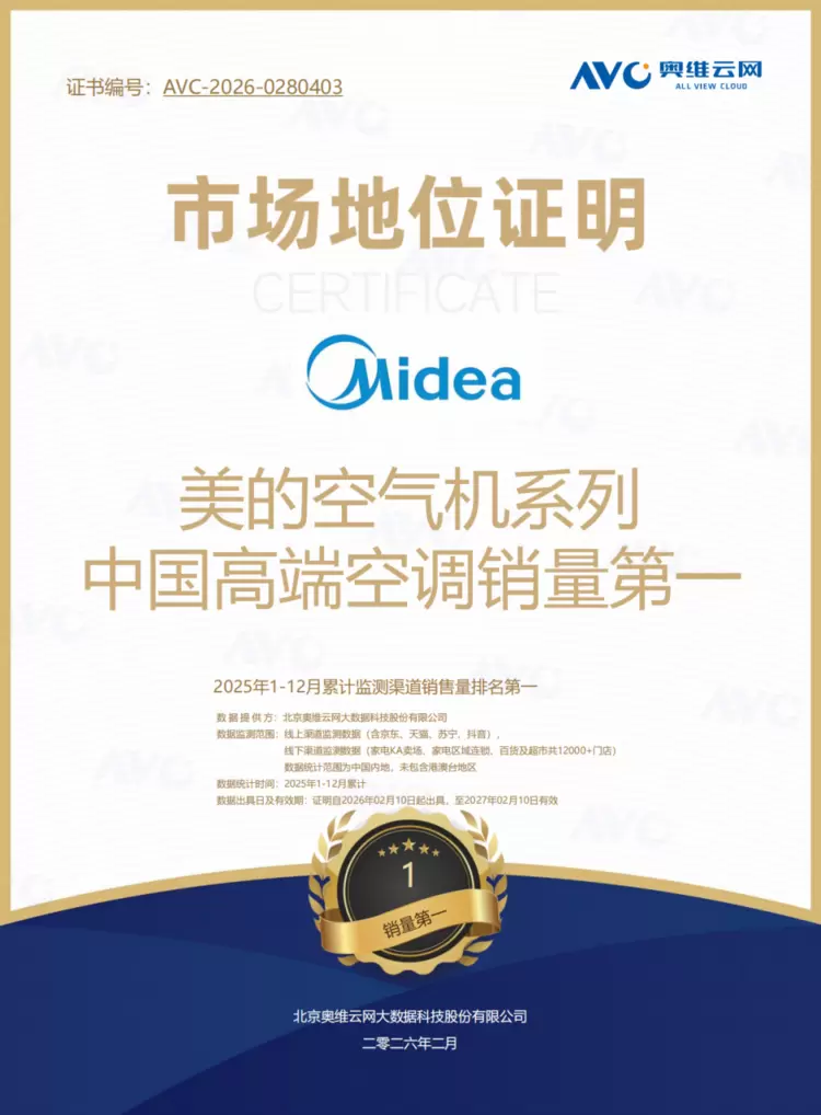 空调行业的下半场,竞争的核心已从单一参数的内卷,转向系统级的底层架构与跨越周期的用户体验。作为太空中心官方合作空调,美的空气机系列凭借航天级的严苛标准与过硬的产品力,累计销量已突破120万台,稳居高端市场第一。未来,以美的鲜净感空气机T6为代表的新一代空调,将继续以“科技美学化、功能生态化”为方向,推动中国品牌在全球工业设计与智能制造领域实现更高质量的发展。