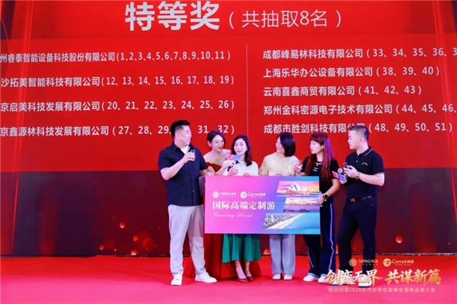 晚宴中,还有多轮幸运抽奖,相继送出了歌派指纹锁、国内游、国际游等丰厚奖品,现场欢声一浪高过一浪,情意融融。