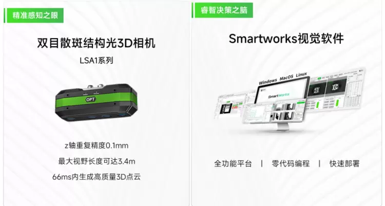 二十年沉淀,OPT构建了从2D到3D的全矩阵视觉产品,提供“感知—决策—执行”的完整闭环方案。