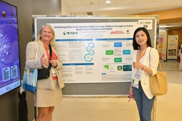 澳大利亚言语语言病理学家SallyHewat教授,与东方启音ECC课程负责人韩莹老师作为东方启音的代表,受邀出席本次盛会。韩莹老师提交的学术论文《促进幼儿早期社会认知技能发展的网上家校协作模式》成功入选大会论文集并进行海报展示,成为全场关注的焦点之一,充分展现了东方启音在早期沟通干预与线上家校协同领域的专业实力与学术影响力。