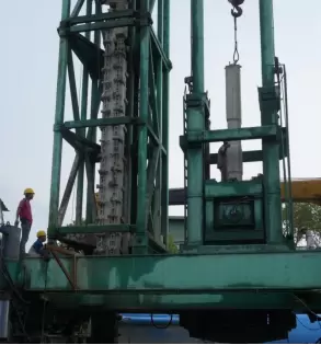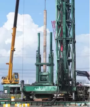 该设备搭载链锯式耐磨钻头,可直接锯割磨碎中风化岩及各类土层,无需引孔,土体均匀度超 95%,最大施工深度达 70 米;方形桩体增大周长、缩小桩距,承载力提升约3倍。设备集成钻搅喷一体化智能系统,可数字化监控施工参数,成孔时间缩短 2/3~3/4,螺锁式接桩仅需 3-5分钟/个,施工效率提升2~3倍。