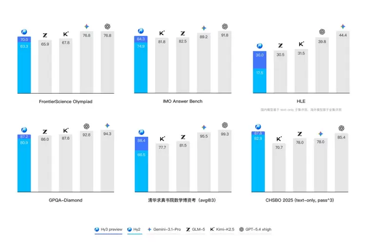 混元Hy3 preview 采用快慢思考融合的 MoE 架构,总参数 295B、激活参数仅 21B,支持最大 256K 上下文长度,兼顾大模型智能上限与推理性价比,契合 “能力体系化、评测真实性、性价比追求” 三大实用原则,是面向真实业务的“量产级”大模型。其在清华数学博资考、生物联赛、SWEBench、TerminalBench 等权威评测中表现突出,Agent 能力大幅增强,已在腾讯元宝、QQ、腾讯文档、CodeBuddy 等核心产品落地,验证了极强的工程化与商业化价值。