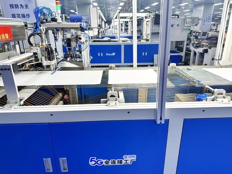 在5G网络的深度赋能下,企业实现从原料到成品的全程自动化运作,人均产值提升至传统模式的3倍,订单交付周期由30天大幅压缩至15天。据企业负责人介绍,以带X光追踪线的腹部垫为例,从纱布上料、折叠、包边,到钡带自动植入与超声波焊接,再到成品分切、折叠与卸料,全流程在自动化设备和数字化系统的协同下高效运转。从第一代设备到第三代升级版,人工效率提升了近6倍。