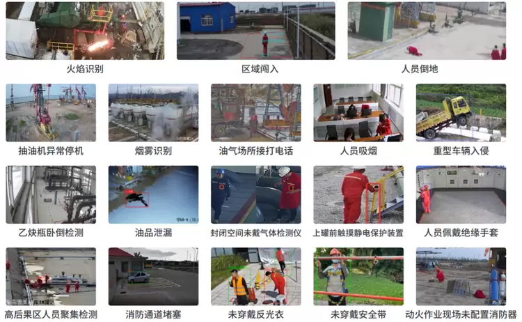 炼化板块:针对业务流程复杂、动静设备多样、大检修及日常巡检要求严格的场景,旷视支持一键配置检修作业监控,对安全措施落实、施工区域闯入、明火异常气体、人员车辆管理等实现智能分析。系统可与PLC等工控平台联动,实时推送异常预警,并形成巡检记录的良性闭环管理。