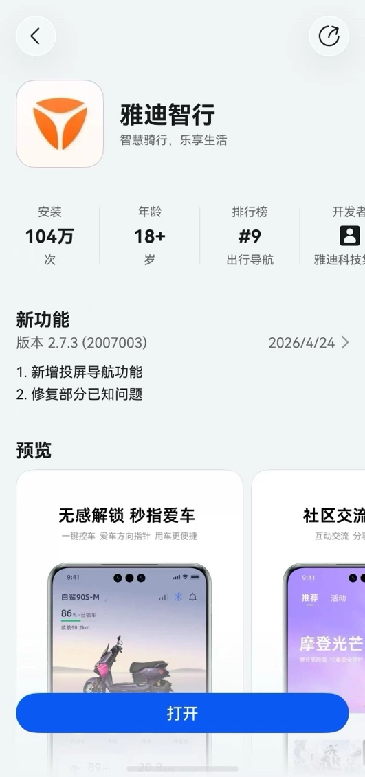 行业首发!鸿蒙版雅迪智行App深度集成百度地图SDK,上线投屏导航,实现“抬头骑行,眼不离路”