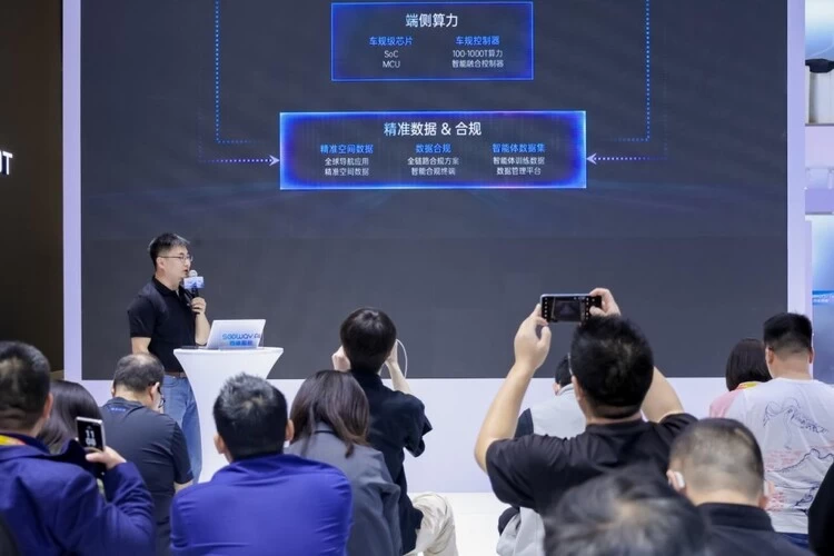 在本次车展上,四维图新举行发布会,行业首发智能体数据综合解决方案,该方案结合了六分科技智能硬件和高精度定位解决方案。六分科技CEO李阳在发布会上发表演讲,深度解析《从汽车智能化到移动智能体的演进之路》。