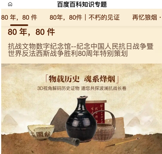 在内容生产方式上,百科与北京大学共同创建了一套人机协同新模式:基于数十万级专业资料库训练的AI模型负责完成词条初稿,在实现500%单词创作效率提升的同时,由北大的硕博和导师亲自审核认证。百科还与人民日报、中国国家博物馆合作,利用AI技术三维高精度还原了二战时期80件重要战场文物,用户在百科上即可360度旋转放大观看。