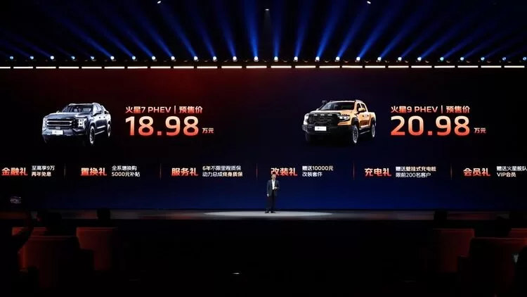 火星PHEV现已正式开启全国预售,其中火星7 PHEV预售价18.98万元、火星9 PHEV预售价20.98万元。火星PHEV为用户倾情奉上六重尊享礼遇:金融专享至高9万元两年免息;置换尊享全系增换购5000元补贴;质保畅享6年不限里程质保、动力总成终身质保;改装乐享价值10000元免费改装套件;补能安享免费充电桩(限量前200名订车客户);会员优享火星舰队VIP会员专属权益。火星皮卡以诚意政策与可靠保障,全面覆盖购车、用车、养车、改装、服务全周期利益,切实降低用车门槛与使用成本,让用户从容驾驭可油可电、有劲又省的全尺寸超级电混皮卡,畅享全场景的高品质出行体验。