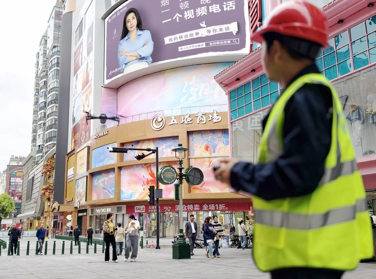 在十堰市茅箭区五堰香港街的上空,一架搭载高清摄像头的无人机“哨兵”正沿着预设航线平稳飞行,自动执行日常巡逻任务。它将捕捉到的实时画面,通过稳定的5G-A网络,清晰地回传至街区管理中心的智慧大屏。地面上,集成数字孪生、大数据与人工智能的智慧步行街平台,同步处理着来自无人机、智慧路灯等数百个智能终端的海量信息,为街区管理装上“智慧大脑”。